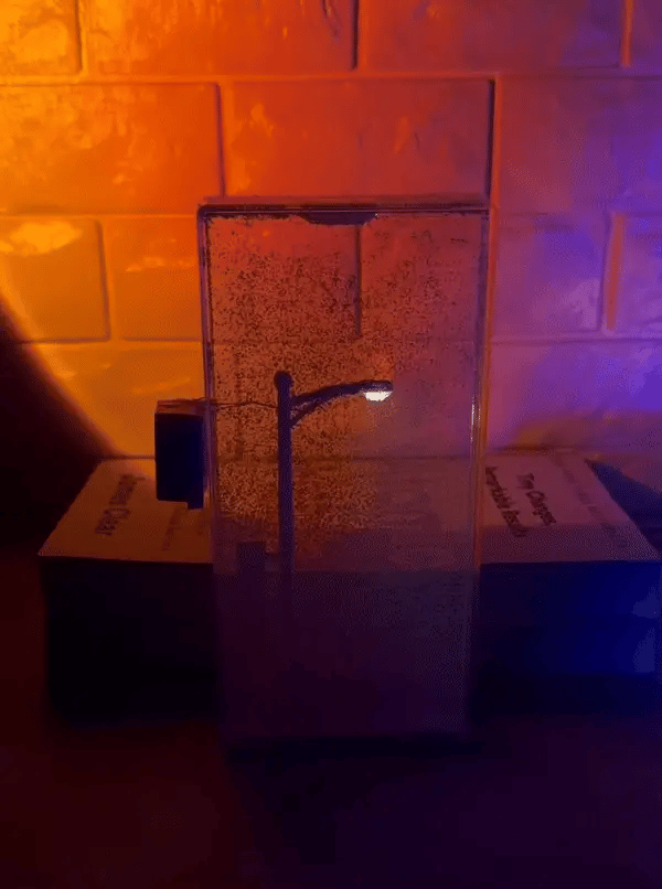 This Christmas, gift the magic of a peaceful winter scene. A lamp post casts a soft, warm glow as snow gently falls, creating a calming atmosphere perfect for any room.